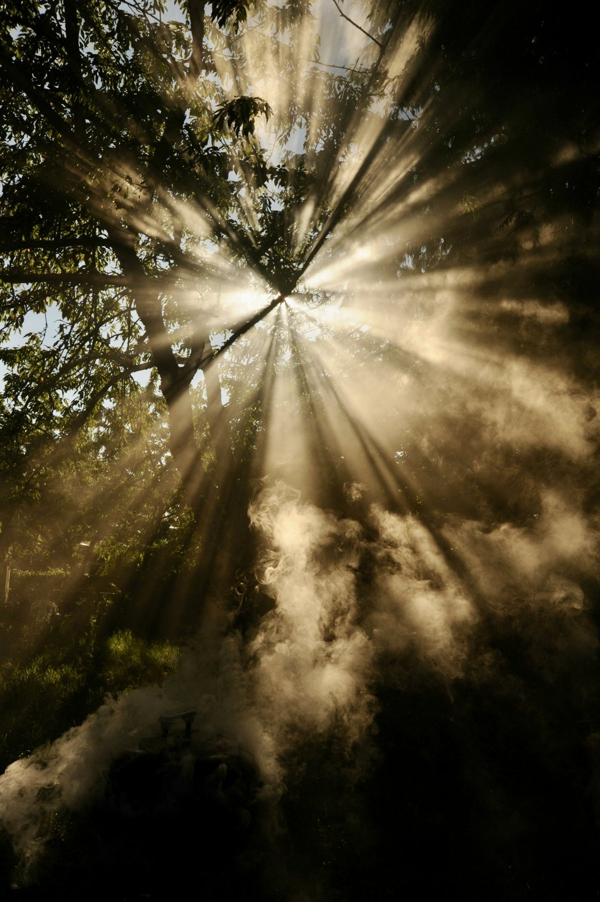 Lorsque la nature s'anime, il suffit de lever les yeux vers le ciel pour voir la magie opérer : la lumière du soleil joue avec les feuillages, dessinant des motifs éphémères.